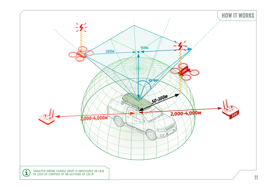 Choven is optimized to counter the most common types of enemy UAVs and control links and is equipped with 14 signal-jamming modules: